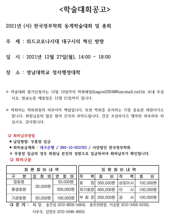 (사) 한국정부학회 추계학술대회 공지