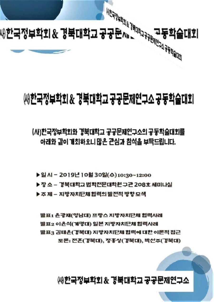 한국정부학회와 경북대학교 공공문제연구소와 함께 하는 학술대회