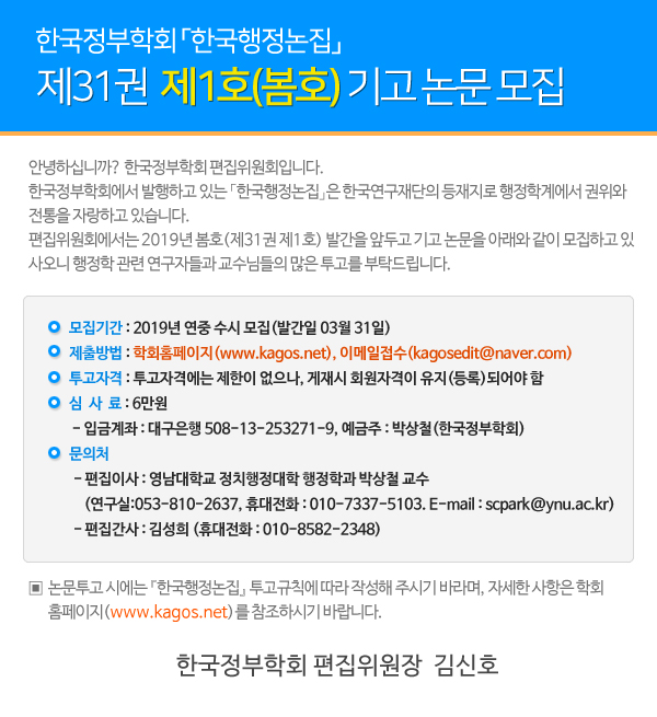 한국행정논집 제31권 제1호 논문기고 공지