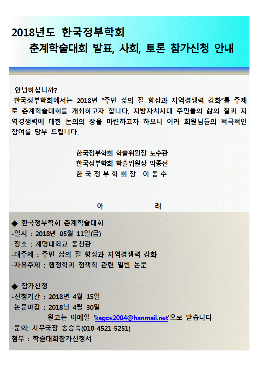 (사)한국정부학회 동계학술대회 및 총회 안내