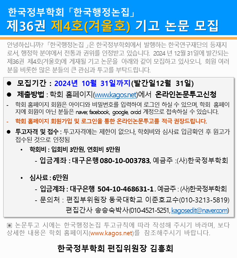 -2024년도(사)한국정부학회 동계학술대회 및 정기총회 안내-