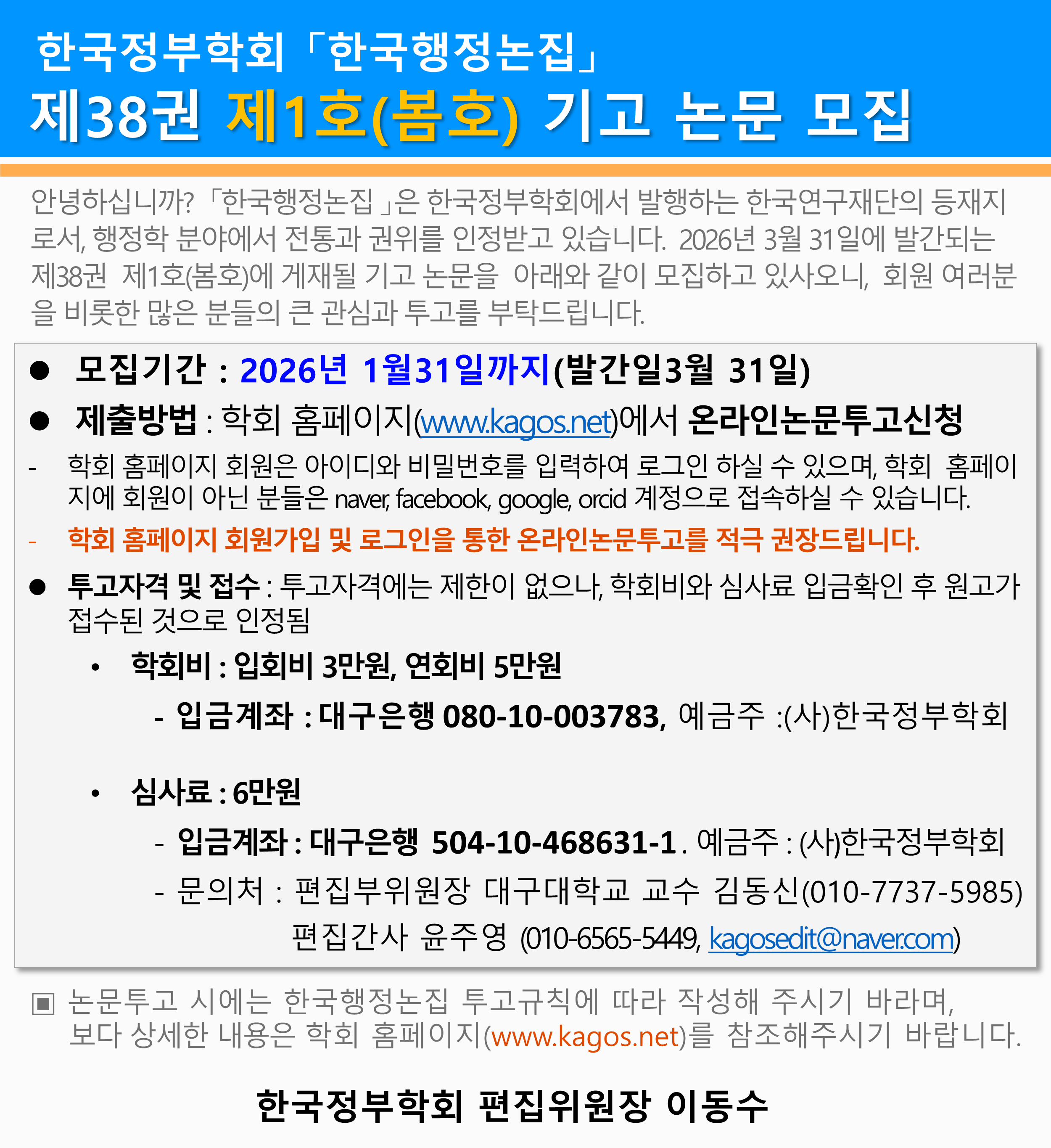한국행정논집 38권 1호 봄호 기고안내