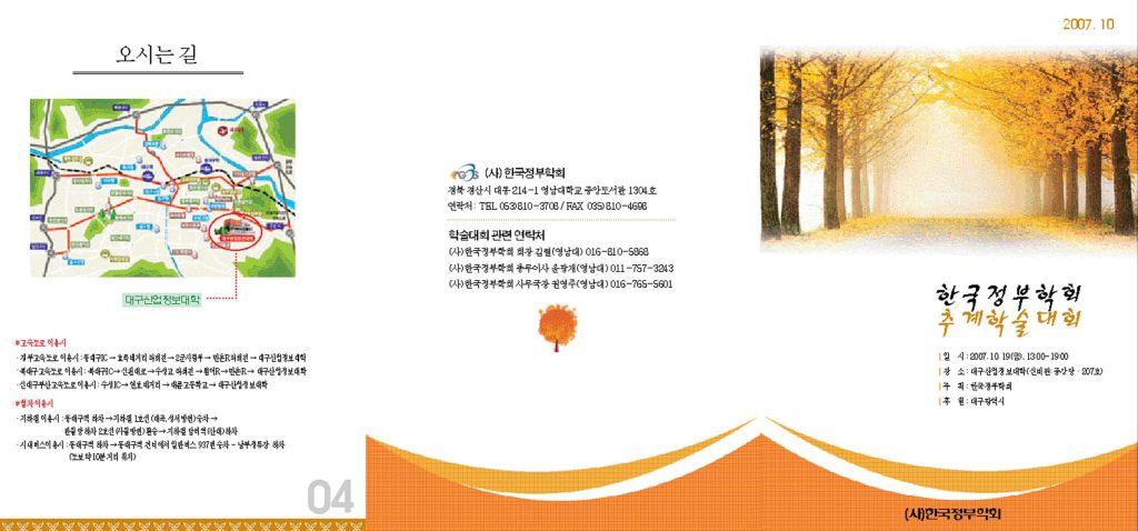 한국정부학회 추계학술대회가 대구산업정보대학(신비관: 중강당, 207호)에서